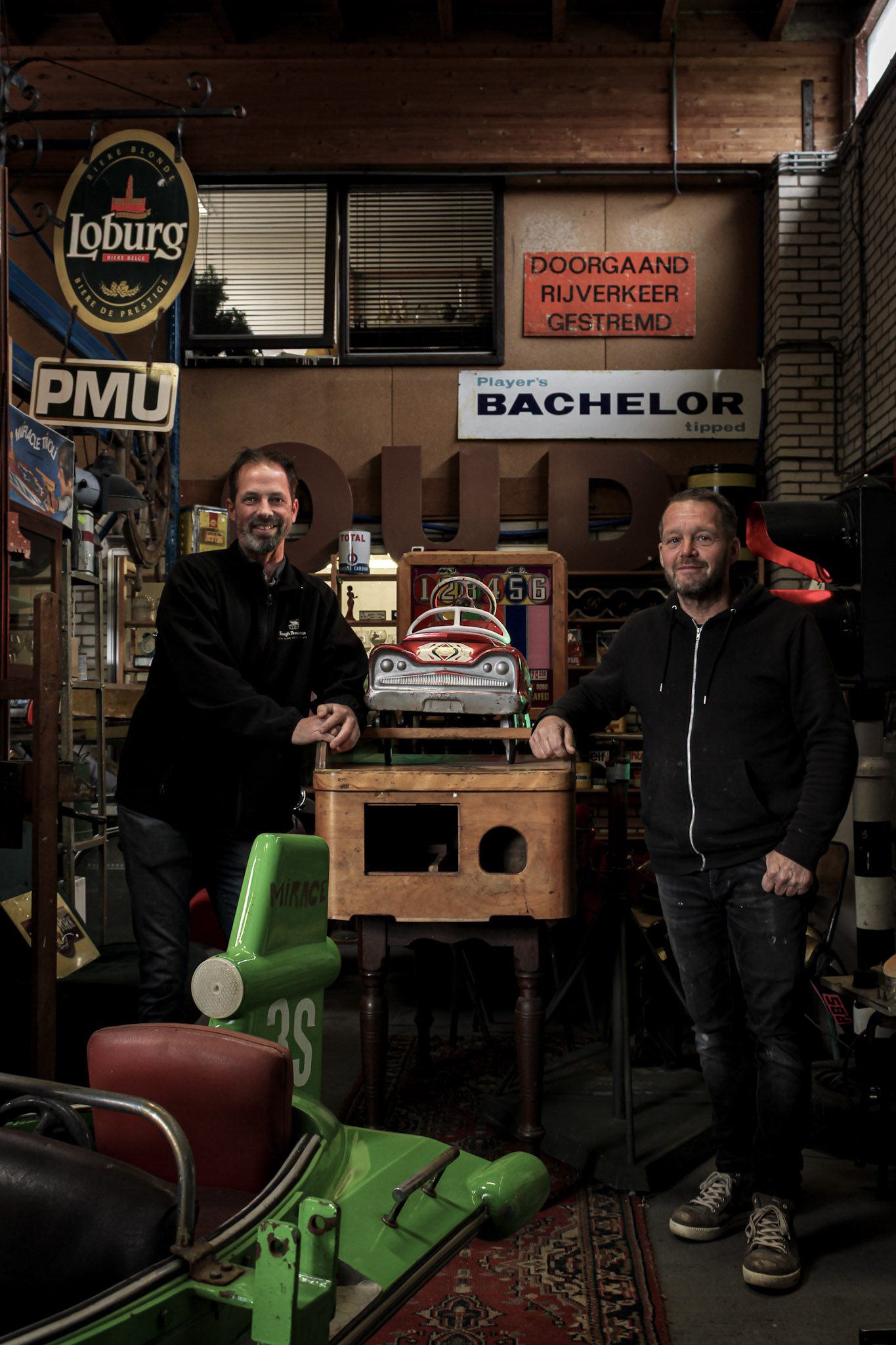 Ondertussen is de loods uitgegroeid tot iets wat echt van hun samen is. “Zo’n 95% van wat hier staat is van ons samen, de rest is of van mij of van Erik en het is ook gewoon hartstikke leuk om het samen te doen!”, zegt Bart. Ondanks dat kun je heel goed zien uit wiens koker de items hoofdzakelijk komen. “Ik ben sowieso gek van de kermis en het circus, dat vind ik sowieso altijd mooi!”, zegt Erik enthousiast en voegt daaraan toe, “Maar het is altijd de vraag wat je tegenkomt natuurlijk. Zo kochten we net een verzameling aan trapautootjes” en Bart zegt daarover: “Ik ben dol op alles met wielen of alles wat groot is! Zoals een boot, vliegtuig of een vrachtwagen laatst.”